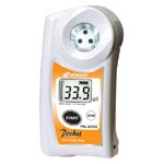 Model PAL-ACID1 (Citric Acid) Cat.No. 4641 Measurement Range Citric acid concentration 1.0 to 40.0(g/l) (Total-citrus acidity conversion [g/l]) Minimum Indication 0.1(g/l) Repeatability 1.0 to 20.0(g/l) ±0.5(g/l) 20.1 to 40.0(g/l) ±1.0(g/l) Measurement Temperature 10 to 40°C (Automatic Temperature Compensation ) Ambient Temperature 10 to 40°C Optional •Micropipette : RE-79401 •Calibration solution : RE-130002 •Quinone reagent solutions 10 pcs : RE-99432 •Quinone reagent solutions 20 pcs : RE-99430 •Quinone reagent solutions 50 pcs : RE-99431The quinone reagent has a shelf life of 3 months, and the calibration solution has 1 year (unopened) from the date of purchase. Power Supply 2 × AAA Batteries Dimensions & Weight 55(W)×31(D)×109(H)mm, 100g (Main Unit only)